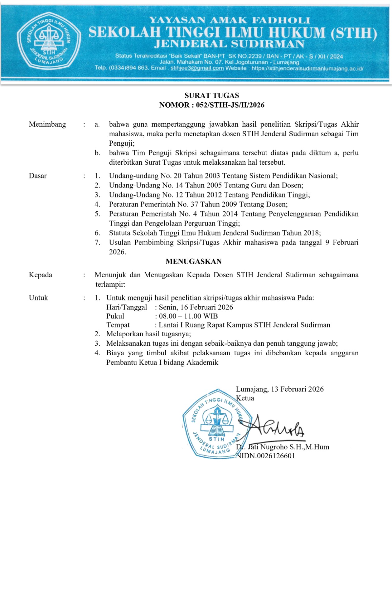 SEKOLAH TINGGI ILMU HUKUM JENDERAL SUDIRMAN